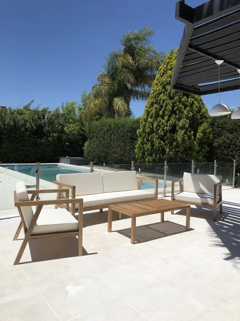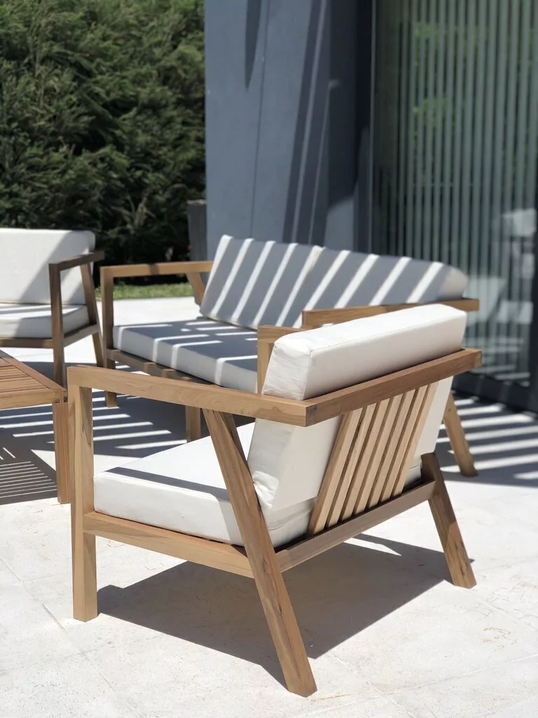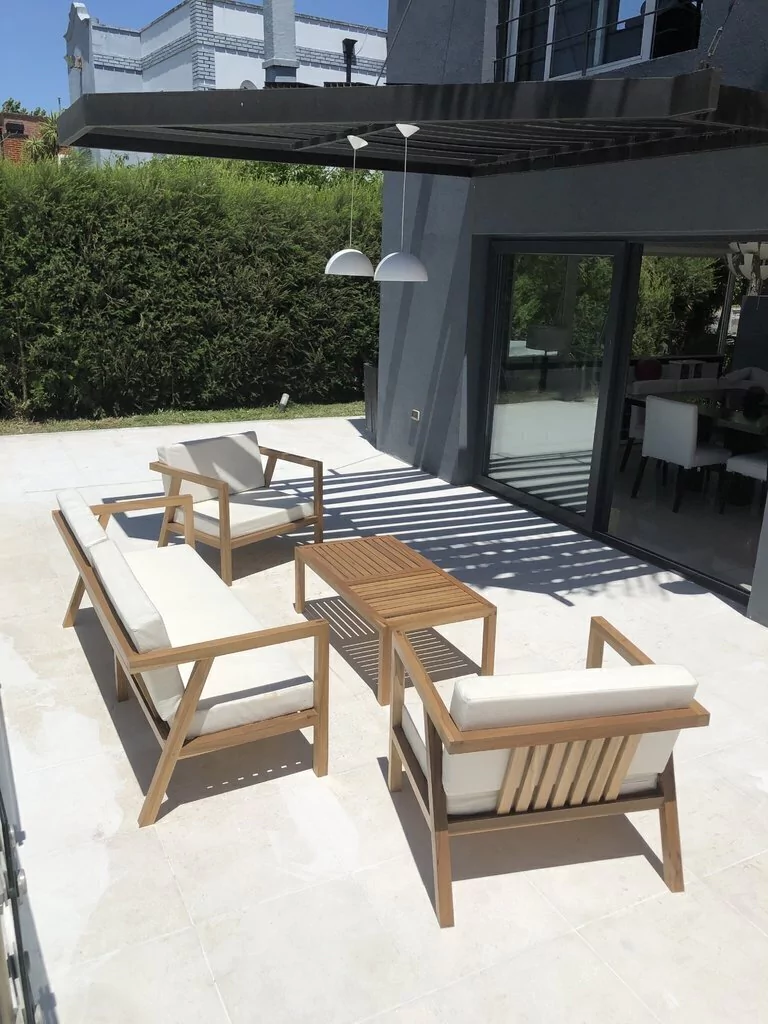 Descubre el Living Outdoor IBIZA, una elegante opción para tus espacios exteriores, realizado en madera maciza Petiribi. Este mobiliario destaca por su resistencia y estética, ideal para disfrutar de momentos al aire libre.
